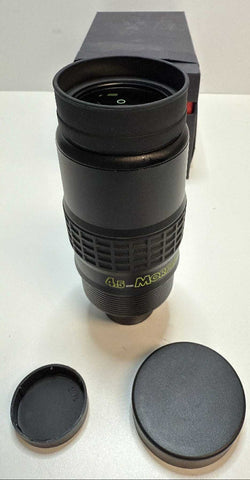 This Baader Morpheus 4.5mm eyepiece is in excellent, pristine condition. The optics and body are absolutely clean and clear. This includes both dust caps, the belt holster, the winged eye guard, and the M43 extension, all in their original box.