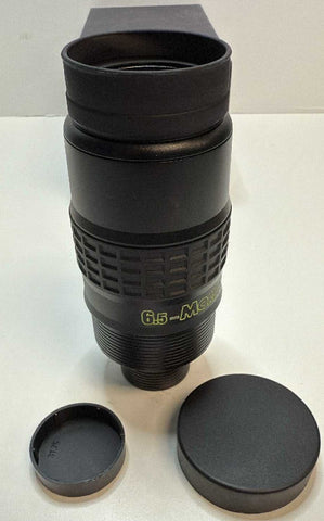 This Baader Morpheus 6.5mm eyepiece is in excellent, pristine condition. The optics and body are absolutely clean and clear. This includes both dust caps, the belt holster, the winged eye guard, and the M43 extension, all in their original box.