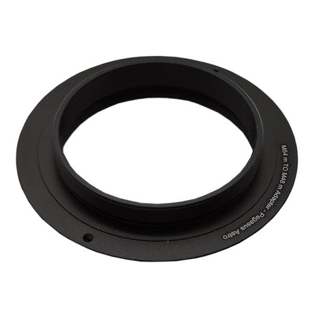 At only 2 mm thick, this Pegasus Astro M54 Male to M48 Male Adapter with black anodized (matte) aluminum construction adds only a modicum of back focus. In addition, the M54 side of this adapter contains internal M48 threads.
