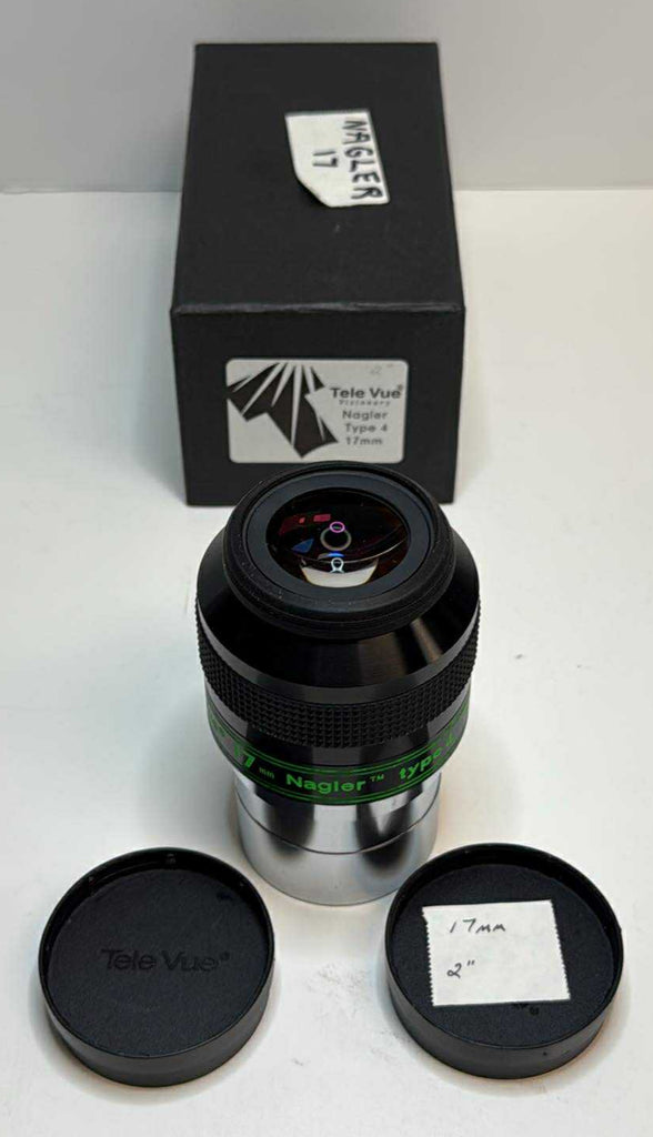 This is a used Tele Vue 17mm Nagler in very good condition. The optics are clean and the body is unmarked, showing very little signs of use. This includes both dust caps and the original box.
