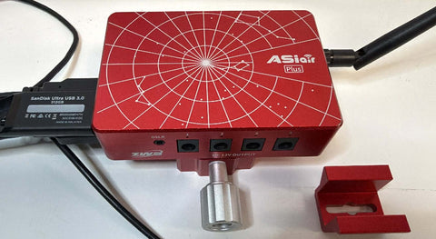 This is a used ZWO ASIAIR Plus in excellent condition. This includes the original box, the two attached USB cables, as well as everything shown in the photos. The previous owner upgraded this by adding the ZWO DOVE AIR dovetail clamp (a $39 value) and a Sandisk Ultra 512GB thumb drive (a $35 value).
