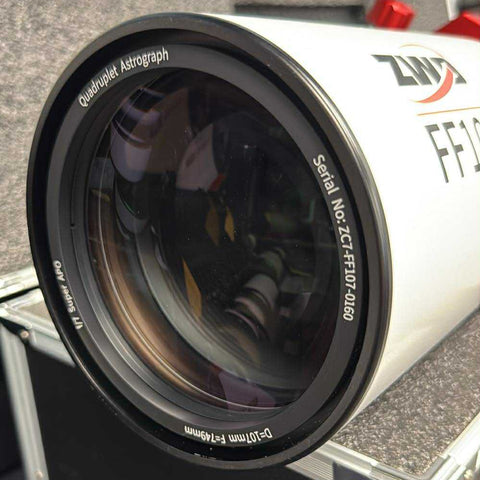 ZWO is well known for their superb astro-imaging cameras, but just wait till you get a look at their beautiful 107 mm Quadruplet Apochromatic Refractor! This air-spaced Quad refractor uses a 3 + 1 lens structure that contains two pieces of extra-low dispersion (ED) glass. This produces a flat field so you do not need a stand-alone flattener, which can be expensive! Because there is no need for a flattener, you do not have to worry about calculating its back focal distance in addition to that of the scope and your adapters, making it much easier to add your accessories and start shooting! Of course, the spectacular optical design also all but eliminates chromatic aberration and produces images that are sharp and clear!