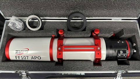This is an FF107 and 0.7x reducer in excellent condition. The optics are clean and the body is unmarked, both on the scope and on the reducer. Enjoy the savings!